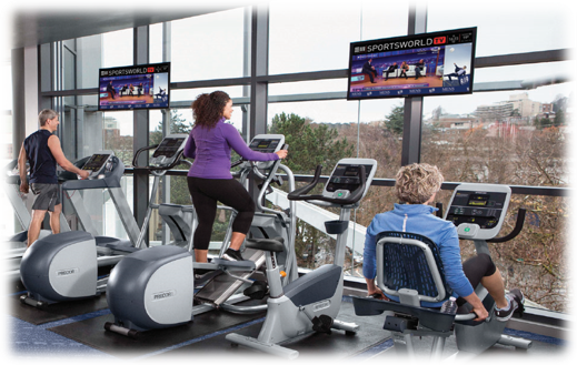 En los Gimnasios Sports World, en la zona de cardio, ese lugar en el que cada persona pasa un mínimo de 30 minutos en su visita al Gym, contamos con un paquete de 3 pantallas digitales enfocadas a publicidad, así como una pantalla adicional tanto en los vestidores de damas como en el de caballeros.